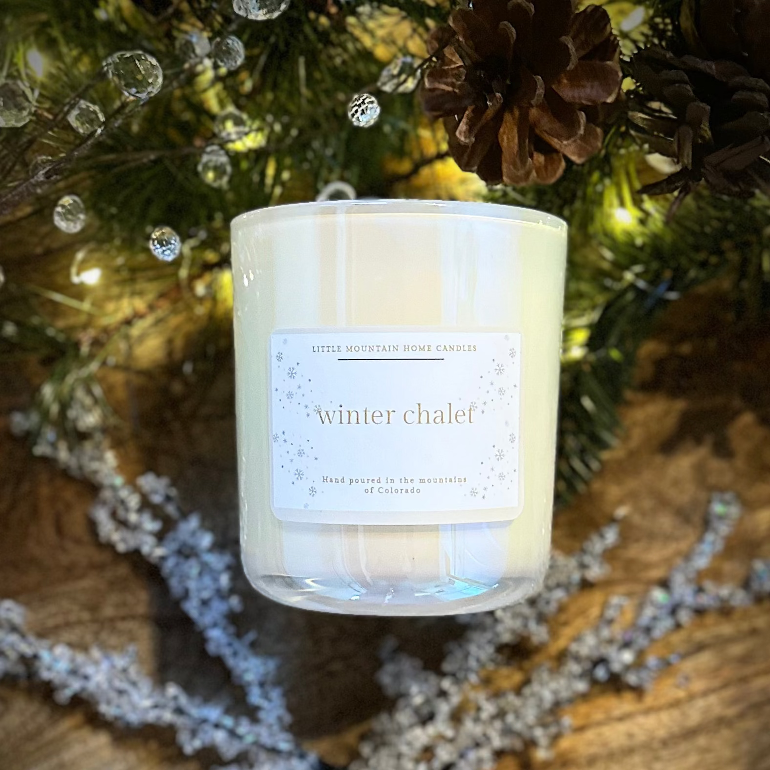 Experience the elegance of Winter Chalet, a 12 oz iridescent candle jar that literally shimmers and adds a glittering touch to your holiday décor. Double-wicked for a rich, even burn, it’s as much a statement piece as it is a captivating fragrance.